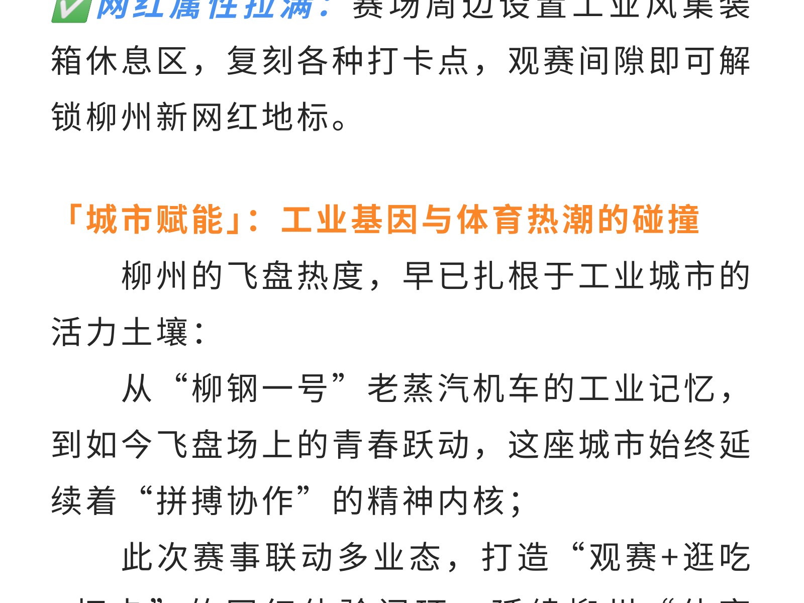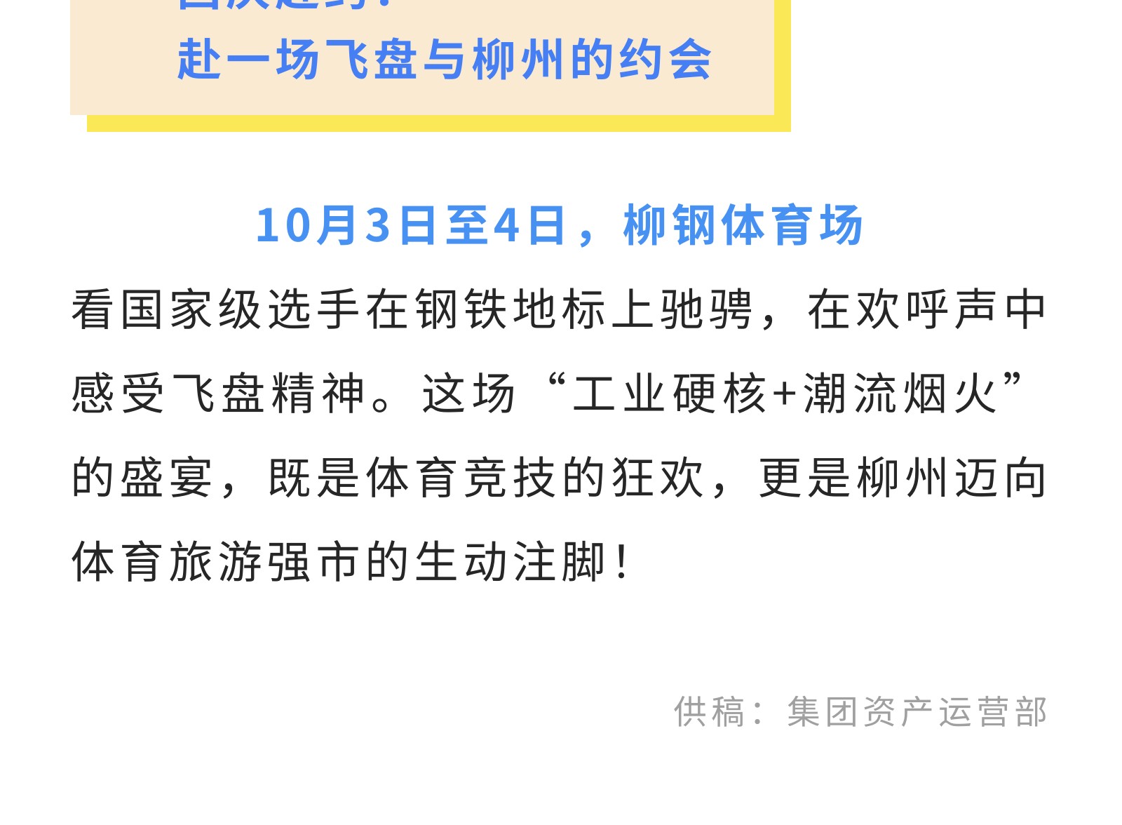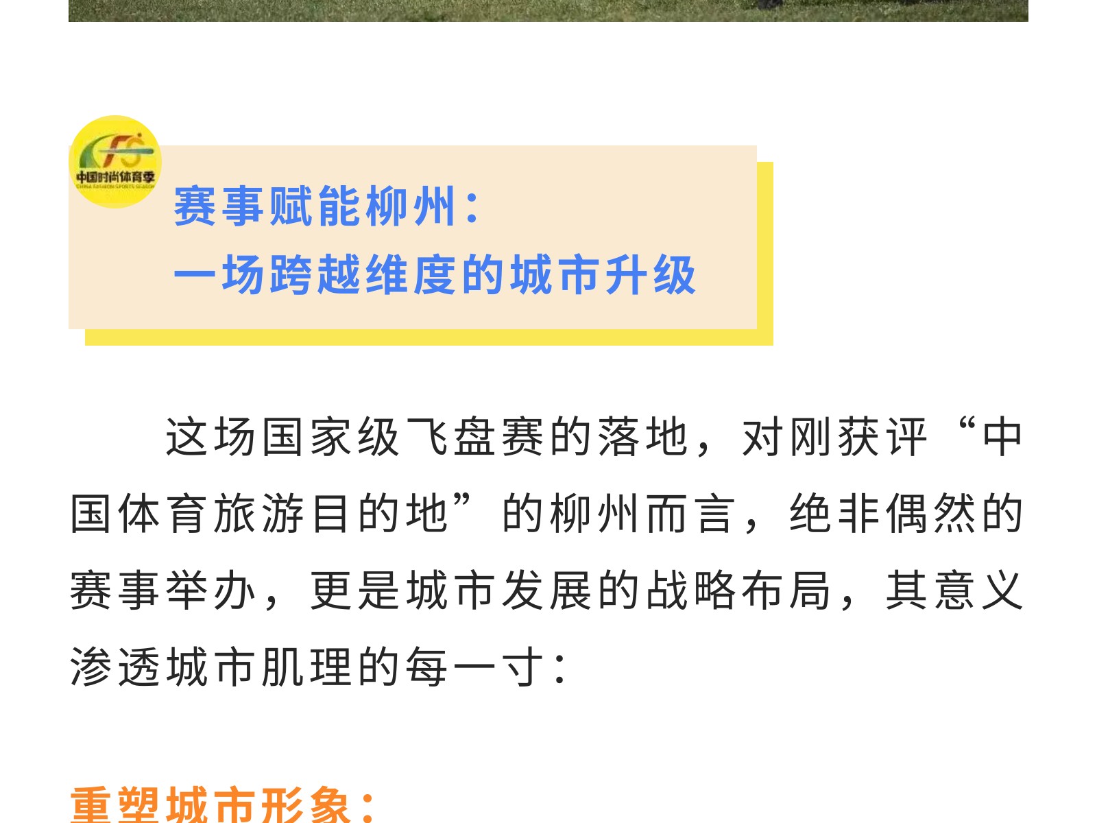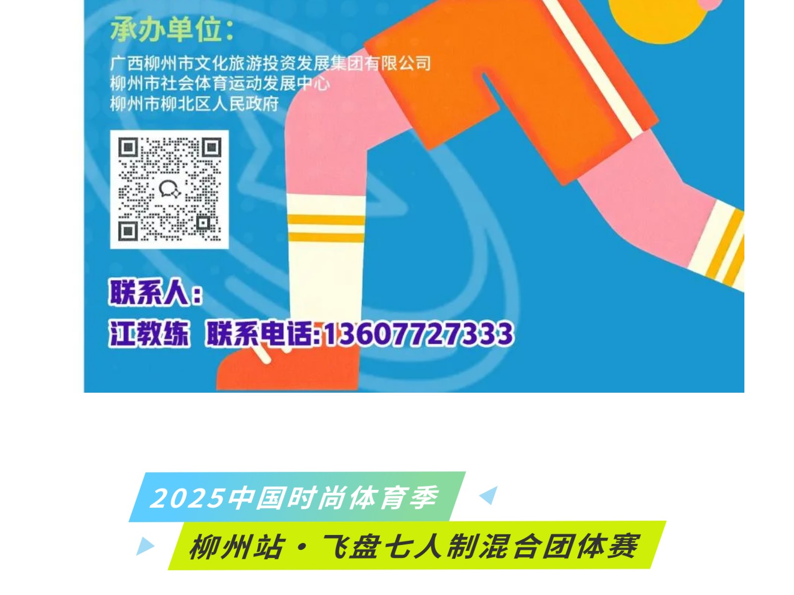 官宣!2025中國時尚體育季(柳州站)飛盤邀請賽來襲!10月3-4日燃情開幕! 發(fā)布時間:2025年09月27日 10時來源:本站原創(chuàng)瀏覽:49 人次